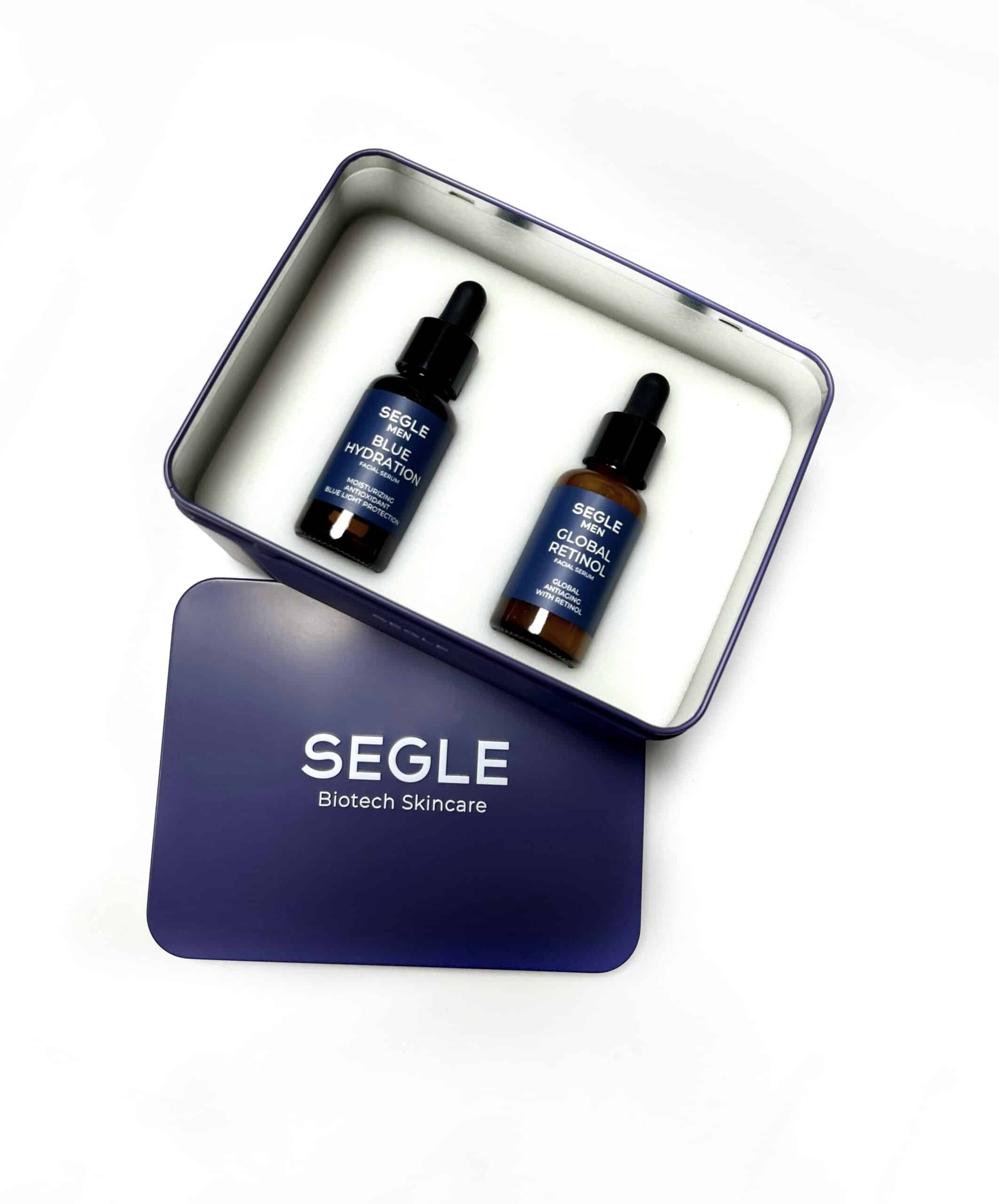 Склад: Segle Men Blue Hydration Serum: Aqua, Propylene Glycol, Glycerin, Niacinamide, Gluconolactone, Acetyl Glucosamine, Bifida Ferment Lysate, Sodium Hyaluronate, Spirulina Maxima Extract, Fructose, Glucose, Sucrose, Alanine, Hexylene Glycol, Dextrin, Aspartic Acid, Glumatic Acid, Hexyl Nicotinate, Urea, Lactic Acid, Xanthan Gum, Ethylhexylglycerin, Disodium Edta, Peg-40 Hydrogenated Castor Oil, Potassium Sorbate, Phenoxyethanol, Sodium Benzoate, Sodium Hydroxide, Parfum. Segle Men Global Retinol Serum: Aqua, Glycerin, Caprylic/capric Triglyceride, Niacinamide, Isononyl Isononanoate, Propylene Glycol, Glycine Soja Seed Extract, Tocopheryl Acetate, Retinol, Chlorella Vulgaris Extract, Bisabolol, Centella Asiatica Extract, Glycyrrhiza Glabra Root Extract, Lecithin, Lactic Acid, Citric Acid, Sodium Phytate, Propanediol, Xanthan Gum, Polysorbate 20, Caprylyl Glycol, Sodium Levulinate, Potassium Sorbate, Sodium Benzoate, Farnesol, Bht, Bha, Parfum.